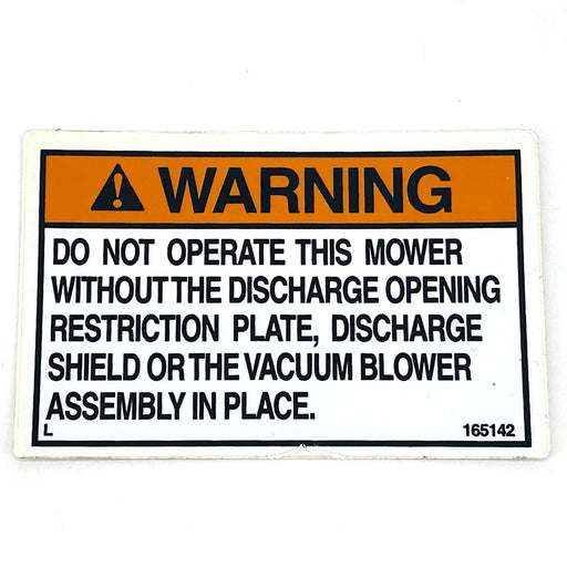 GRASSHOPPER INC - 165142 - DECAL - DISCHARGE OPEN WARNING